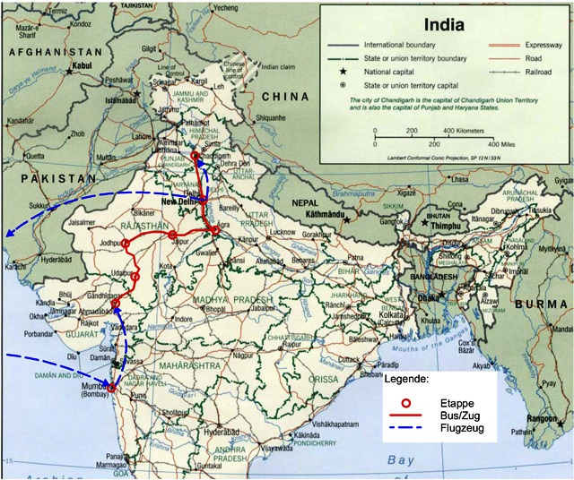 Unsere Reise beschränkt sich auf den nord-westlichen Teil Indiens. Hier hat eine Völkervermischung und damit auch eine kulturelle Überlagerung der alten buddhistischen-, hinduistischen Architektur durch das Eindringen der islamischen Mogulherrscher aus dem zentralasiatischen Raum stattgefunden. Die vorhandene föderale Herrschaft der Maharajas hat sich meist mit den eindringenden Mogulherrschern arrangiert und somit haben diese indischen "Fürstenhäuser" nicht nur die Mogulherrscher sondern auch zu einem wesentlichen Mass die koloniale Herrschaft der Britten überlebt. Nicht was ihren politischen Einfluss anbelangt, aber Ihre Güter wissen einige sehr gut dem internationalen Luxus - Tourismus anzubieten.